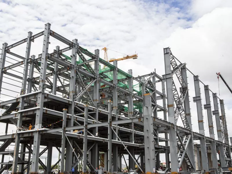 Komponén baja, kalebet balai, kolom, kurbar, sareng truses hateup, anu prefabricated di baja produk-kualitas luhur. Komponén ieu digentos ku penegatipan tepat, ngasongkeun aranjeunna babarengan akurat sareng aman salami instalsi. Proses prefablikasi ngalibatkeun téknik rékayasa madanjangan anu maju pikeun ngajamin kualitas sareng daya tahan tina unggal sapotong.